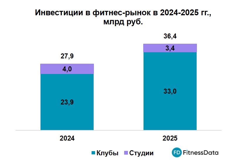 Общий объем инвестиций в развитие новых фитнес-объектов (без учета строительства зданий) увеличился на 30%, достигнув 36,4 млрд рублей. При этом рост инвестиций был крайне неравномерным:
