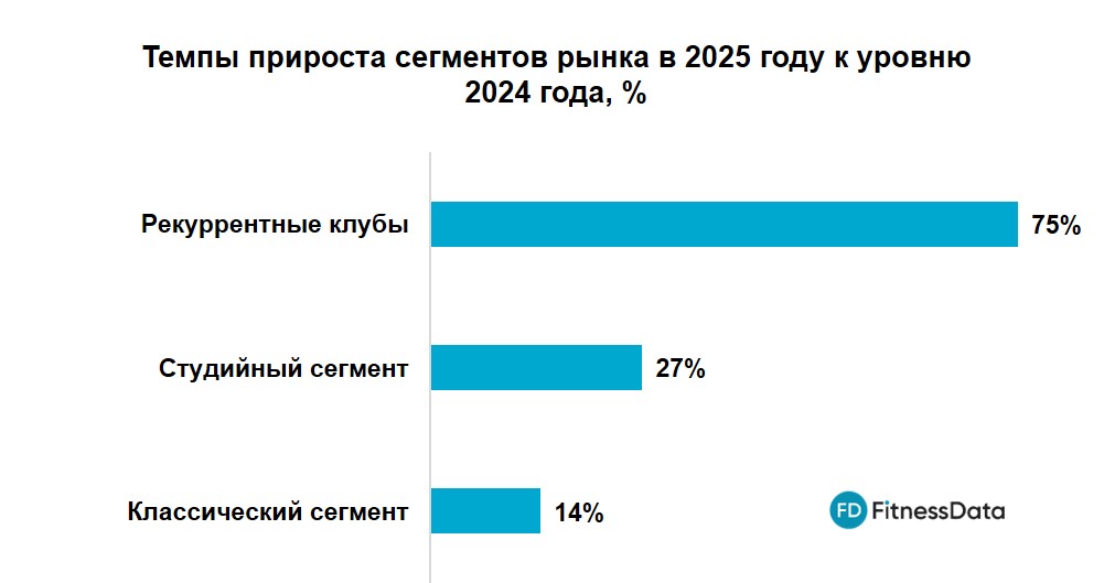 По темпам прироста среди сегментов лидировали рекуррентные клубы (рост на 75%), в то время как классический сегмент показал наименьший прирост (14%).