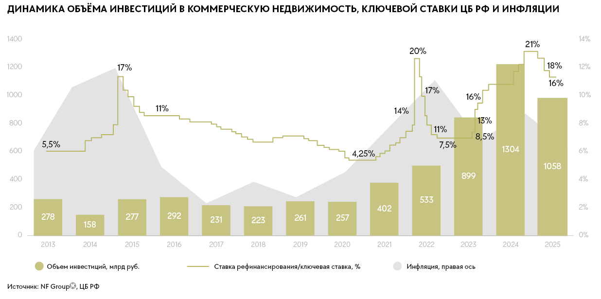 Банковские депозиты становятся все менее привлекательным инструментом, и по мере смягчения денежно-кредитной политики можно ожидать перераспределения капитала физических лиц на биржу, что даст инвесторам возможность выйти в сегмент качественной коммерческой недвижимости, говорит Андрей Постников, управляющий партнер и генеральный директор инвестиционно-консалтинговой компании Ricci. «И бизнес, и государство последние годы думают над тем, как вовлечь деньги частных лиц, находящиеся на депозитах и составляющие около 60 трлн рублей, в инвестиционную активность и тем самым частично заместить ушедших с рынка институциональных западных игроков», — соглашается Ольга Кашкарова, инвестиционный директор ГК «Ориентир».