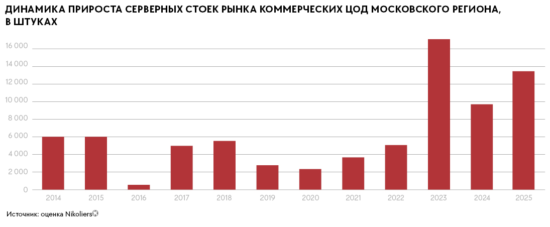 Виктор Афанасенко упоминает про крупные проекты в Московском регионе, заявленные на 2026 год, что приведет к годовому приросту стоек на 17 тыс. штук и увеличению мощности рынка на 186 МВт и может стать рекордным показателем за год за всю историю рынка. Также эксперт ожидает увеличения потребности в более мощных стойках на фоне развития искусственного интеллекта и машинного обучения. «Крупные игроки, включая IT-компании, финтех и маркетплейсы, активно развивают инфраструктуру, в том числе строят корпоративные дата-центры для собственных нужд, что снижает зависимость от внешних провайдеров», — говорит он.