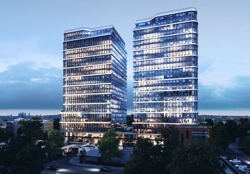 Деловой центр Dubinin’Sky класса Prime расположен в динамично развивающемся Павелецком деловом кластере, в 7 минутах пешком от станций метро «Павелецкая» и «Серпуховская». Его площадь составит 106 088 кв. м, из которых свыше 68 000 кв. м будет отведено под офисные и коммерческие помещения. Здание состоит из двух корпусов высотой в 24 этажа, объединённых двухэтажным стилобатом. На этажах стилобатной части разместится торговая галерея с ресторанами, кафе, магазинами, просторной столовой и салонами бытовых услуг. На втором этаже откроется собственный фитнес-клуб с бассейном. Одна из главных особенностей бизнес-центра — открытые террасы общей площадью 1 487 кв. м, на которых арендаторы смогут обустроить пространства по собственному усмотрению.