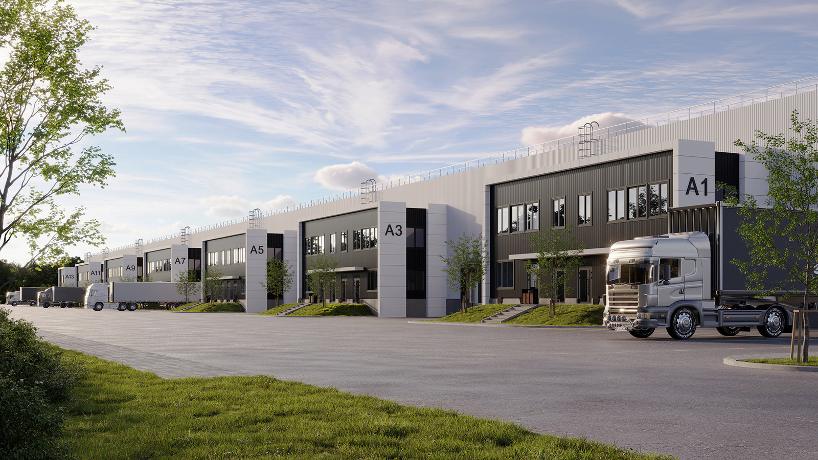Все корпуса будут оснащены индивидуальными зонами погрузки докового или воротного типа, а также встроенными административно-бытовыми помещениями. Эти пространства могут использоваться в качестве офисов или демонстрационных залов.