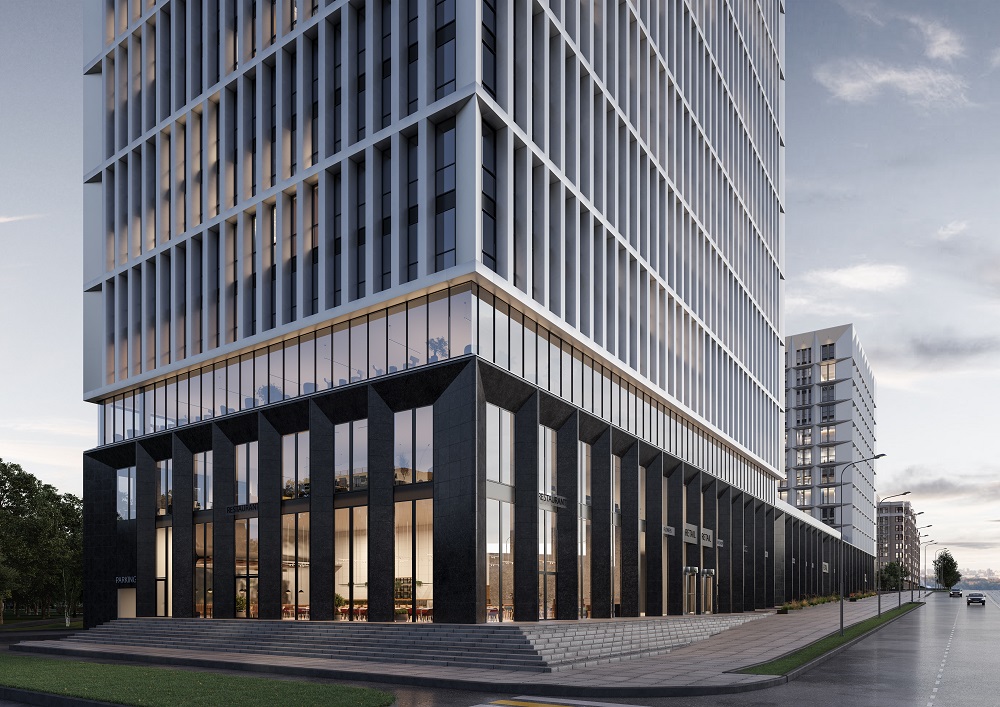 Концепцией премиального бизнес-центра STONE Ленинский предусмотрены две разноуровневые офисные башни в 23 и 12 этажей, объединенные двухуровневым стилобатом с фасадом из черного гранита и витринным остеклением. Такой архитектурный прием визуально создаст welcome-эффект для торговых помещений в проекте, вовлекая горожан в сформированное пространство. Продуманные пешеходные маршруты вдоль здания сформируют стабильный клиентский поток, а гостевой паркинг – автомобильный трафик.