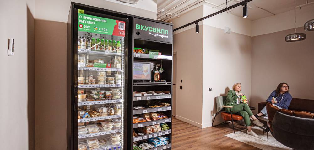 Ритейлер открыл в 2022 году более 200 микромаркетов (всего работает уже свыше 500 микромаркетов ВкусВилл в офисах Москвы и Санкт-Петербурга). Формат подразумевает до нескольких холодильников и сухих стеллажей, и кассу самообслуживания.