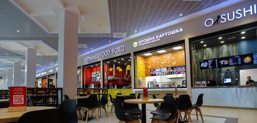 На фудкорте «Солнце Москвы» работают несколько корнеров, в которых можно попробовать разные кухни народов мира: индийские, вьетнамские, японские, русские и другие блюда.