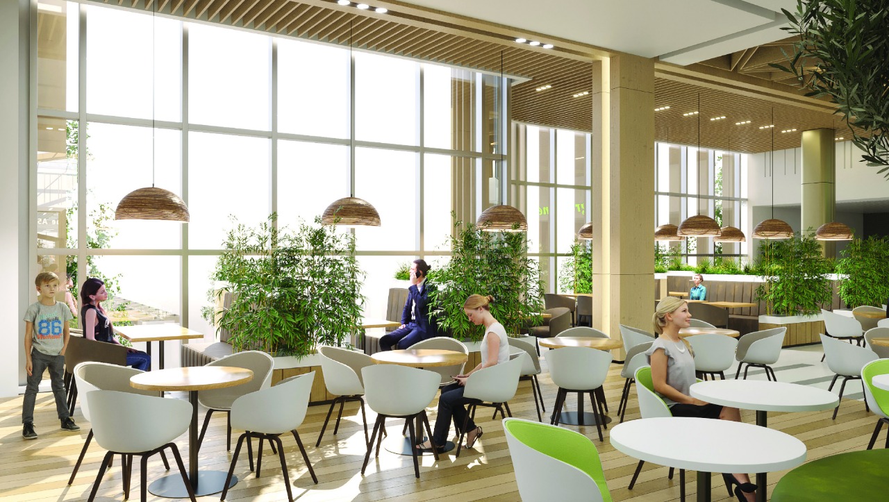 «Торговый центр будет облицован светлым деревом и темными кассетами, а на уровне второго этажа находится выступ, где расположится ресторан. На первом этаже торгового центра разместятся магазины и супермаркеты, а на втором – фуд-корт и развлекательный центр. На кровле торгового центра планируется создание концептуального многофункционального общественного пространства с зоной для отдыха посетителей», – отметил он.