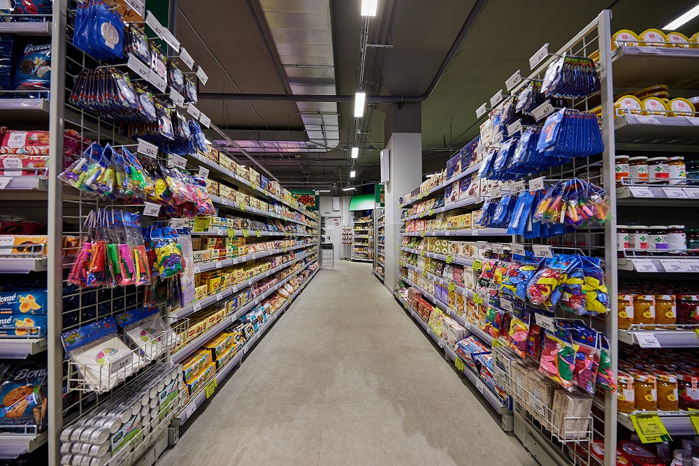 На территории торгового объекта предусмотрена зона кафе с открытой кухней, пиццерия, тандыр для приготовления лепешек. Посетителей супермаркета ждет широкое предложение готовой продукции, включая шаверму, суши и гриль.