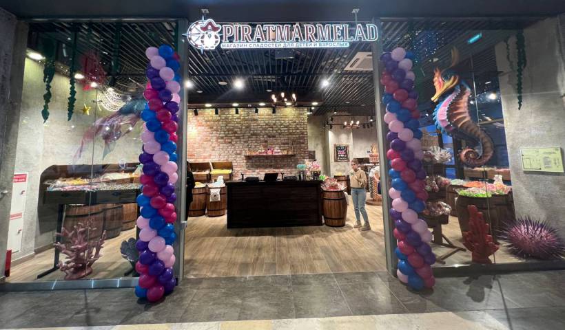 Магазин оформлен в пиратской тематике. Вместо прилавков - сундуки и бочки с мармеладом, ягодным суфле, помадкой, орехами, фруктами в шоколаде, ирисками, а также карамелью ручной работы. Всего в PiratMarmelad представлено более 250 видов сладостей. Магазин площадью 85 кв. м расположился на первом этаже ТРЦ.