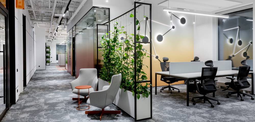 Алексей Зародов, партнер архитектурного бюро Syntaxis: «Начиная работу по созданию данного проекта, мы сразу отбросили любые консервативные идеи. Дизайн офиса и характер оформления его пространства в полной мере отражают инновационность деятельность компании, взгляд в будущее, которое ждет нас в ближайшие десятилетия. Одновременно с этим офис получился крайне гибким, комфортным как для организации корпоративных процессов, так и неформального общения или отдыха. А навигация при всей своей необычности легко считывается в любой точке даже человеком, впервые попавшим в бизнес-центр».