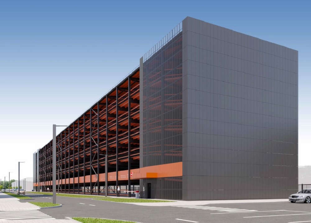 Высота открытого шестиэтажного паркинга – 21,4 м, его площадь составляет 13,5 тыс. кв. м. Объект рассчитан на хранение 500 автомобилей. Балки и колонны паркинга будут изготовлены из горячекатаных двутавров, выпущенных ГК «Евраз», конструкции перекрытий и лестнично-лифтовых узлов будут выполнены из железобетонных элементов заводского изготовления. Фасад паркинга оформят с помощью перфорированных кассет из оцинкованного листа, окрашенного в темные тона.
