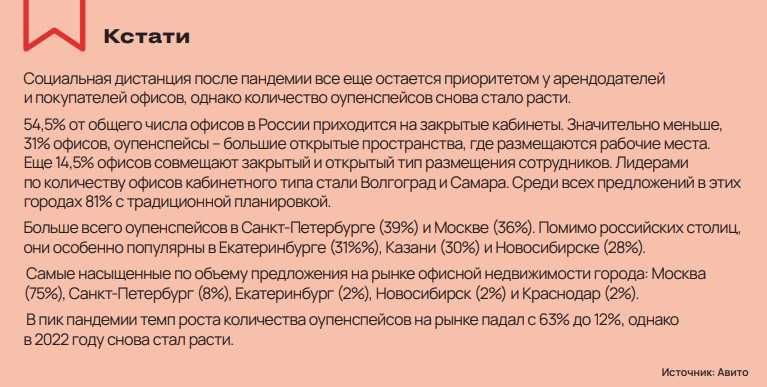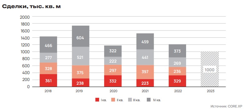 Уход оставшихся международных компаний будет влиять на вакантность в 2023 году в меньшей степени. Вакантность как в классе А, так и в классе В будет зависеть от того объема нового предложения, которое выйдет на рынок, так как объема текущего спроса, пока недостаточного для поглощения пустующих офисов.