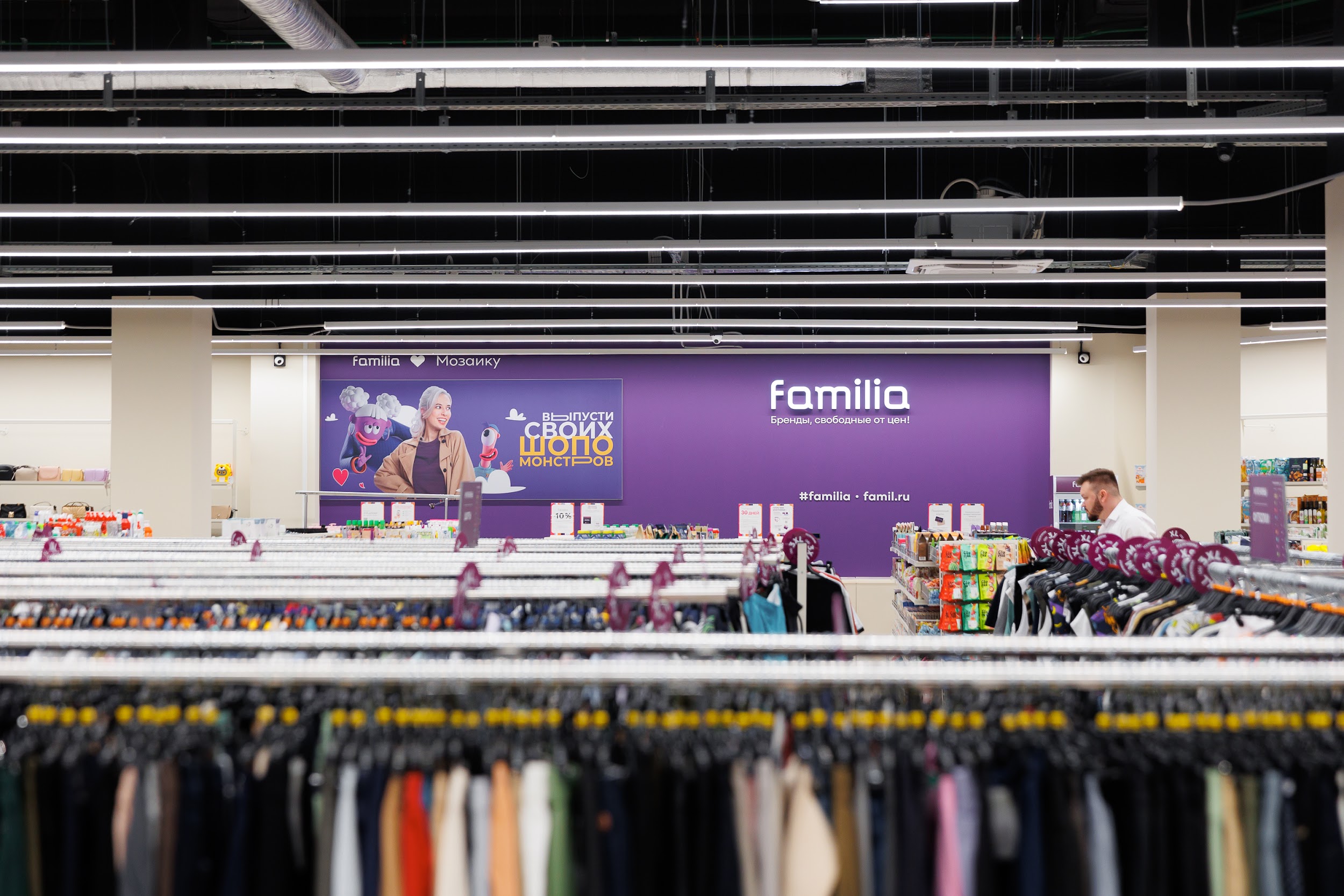 22 апреля открыл свои двери самый большой магазин офф-прайс сети Familia в России, его площадь - более 2500 кв. м, торговая точка расположена на 1 этаже. В день открытия магазин посетило свыше 10000 человек.