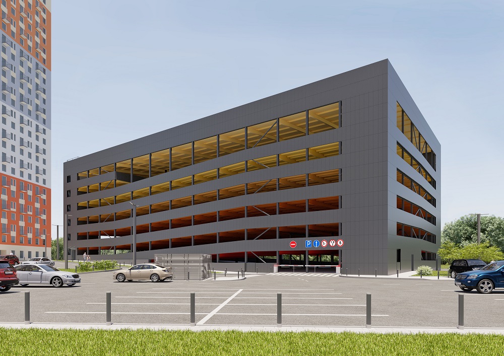 Балки и колонны паркинга будут выполнены из стальных прокатных двутавров производства ЕВРАЗ НТМК. Конструкции перекрытий и лестнично-лифтовых узлов из железобетонных элементов - заводского изготовления. Фасад паркинга украсят окрашенными в темные тона декоративными перфорированными кассетами из оцинкованного стального листа. Кровля здания – двускатная с наружным организованным водостоком.