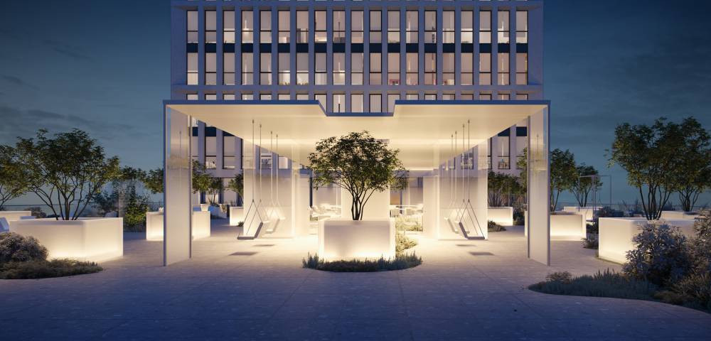 «С учетом архитектурной концепции бизнес-центра с активной нижней частью из гранита и верхнего объема в светлом цветовом решении благоустройство становится связующим звеном между ними и концептуально разделено на две части – воздух и материя. Первая – функционально ориентирована на потребности будущих резидентов и предполагает минималистичные малые архитектурные формы и павильоны для работы на открытом воздухе. Вторая – в зоне ритейла, формирует пешеходные маршруты и дополнительные места отдыха. Новые требования к современной комфортной среде находят отражения в озеленении, используемых материалах и стилистике архитектуры», — рассказал архитектор и руководитель бюро Basis Иван Охапкин.