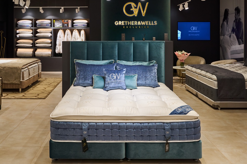 В фирменном бутике Grether & Wells Exclusive можно приобрести инновационные спальные системы: матрасы, кровати и изголовья, а также сопутствующие товары: постельное белье, одеяла и подушки. Здесь можно воспользоваться также специальными услугами: изготовить матрас любого нестандартного размера и формы в короткие сроки с применением уникальной технологии ручного тафтинга, которая дарит ощущение «сна на облаке».