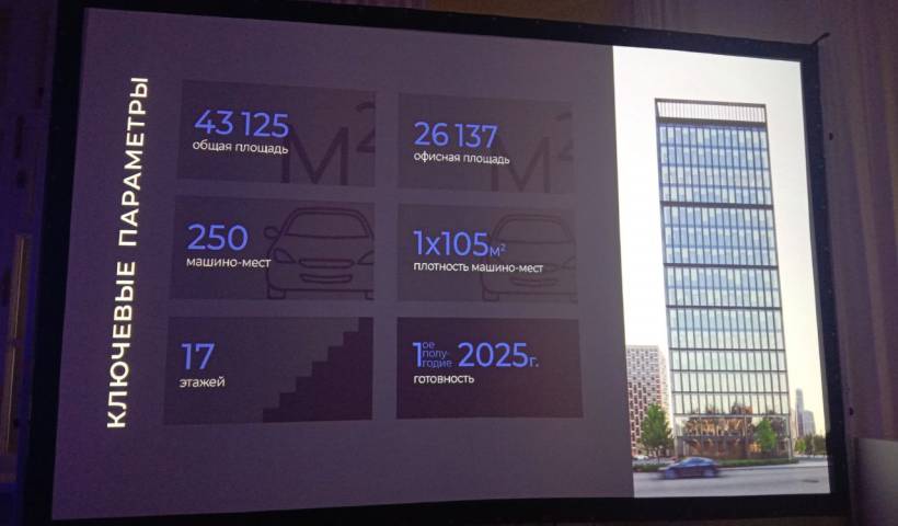 Общая площадь 17-этажного здания составит 43,1 тыс. кв. м, офисная – 26,1 тыс. В бизнес-центре запроектирован подземный паркинг на 250-машино-мест.