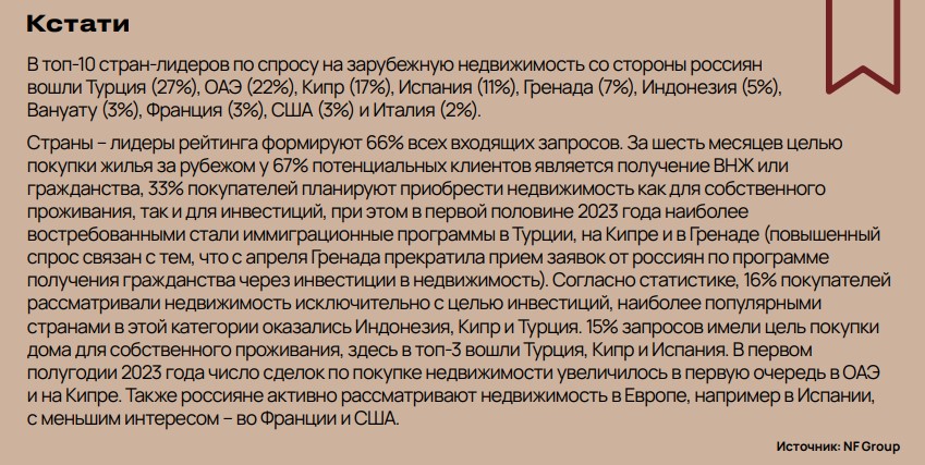 По данным NF Group, в I квартале 2023 года общий объем сделок на первичном рынке элитной недвижимости ОАЭ вырос на 56% по сравнению с 2022-м. Основные локации: Дубай – 802 000 запросов иностранцев (Палм-Джумейра, Дубай Марина, Даун Таун), Абу-Даби – 133 000 обращений (Саадият, Аль-Рим) и Рас-Эль-Хайма – 17 000. Рынок ОАЭ остается устойчивым и безопасным для инвестиций благодаря тому, что страна сохраняет нейтралитет в геополитической повестке, считают аналитики компании. Кроме того, государство предоставляет выгодные условия для бизнеса и релокации, проводит лояльную налоговую политику для инвесторов и компаний, которые намереваются переехать.