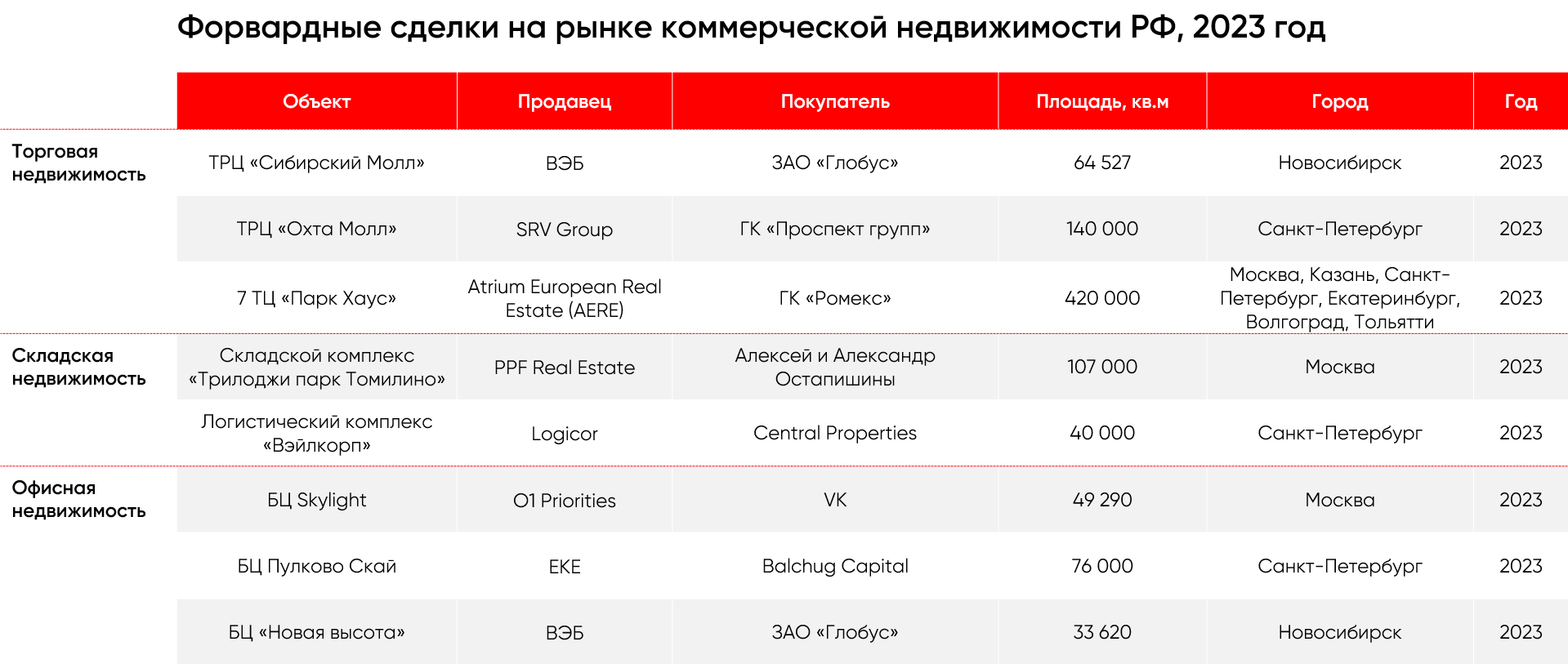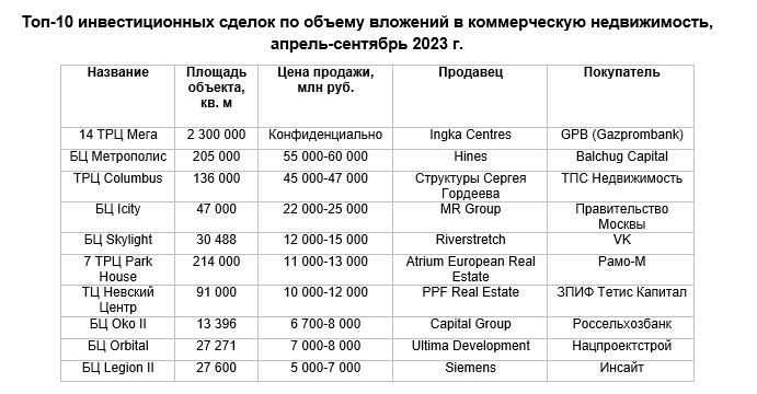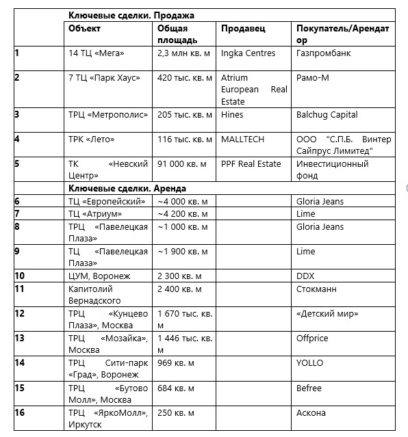 Ключевые сделки последних шести месяцев в России, торговая недвижимость