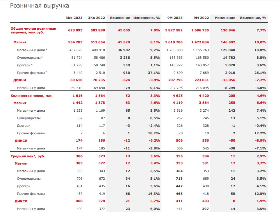 ? Чистая розничная выручка увеличилась на 7,0% год-к году и составила 623,9 млрд руб.;