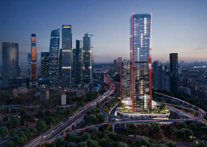В стилобатной части комплекса разместятся летний сад, фитнес-центр с видовым бассейном, мини-маркет, фуд-молл, предприятия сервиса и быта, а также паркинг на 942 машино-места.