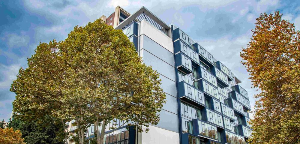 Современный архитектурный дизайн здания отеля подчеркивает динамичные мотивы городского пейзажа Сабуртало, название которого переводится как «Место, где играют в мяч», что отражает энергичное настроение этого района.
