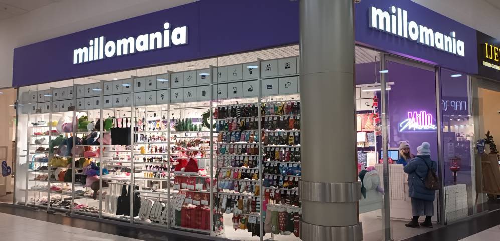 Millomania – магазин милых товаров и подарков общей площадью 42,3 кв. м, расположился на 1-м этаже торгового центра. В магазине большой ассортимент аксессуаров, уходовой косметики, канцелярии, товаров для дома, азиатской продукции и мягких игрушек.