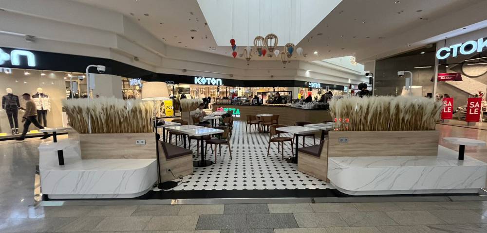 Кафе расположено на первом этаже ТРЦ, напротив магазина Koton.