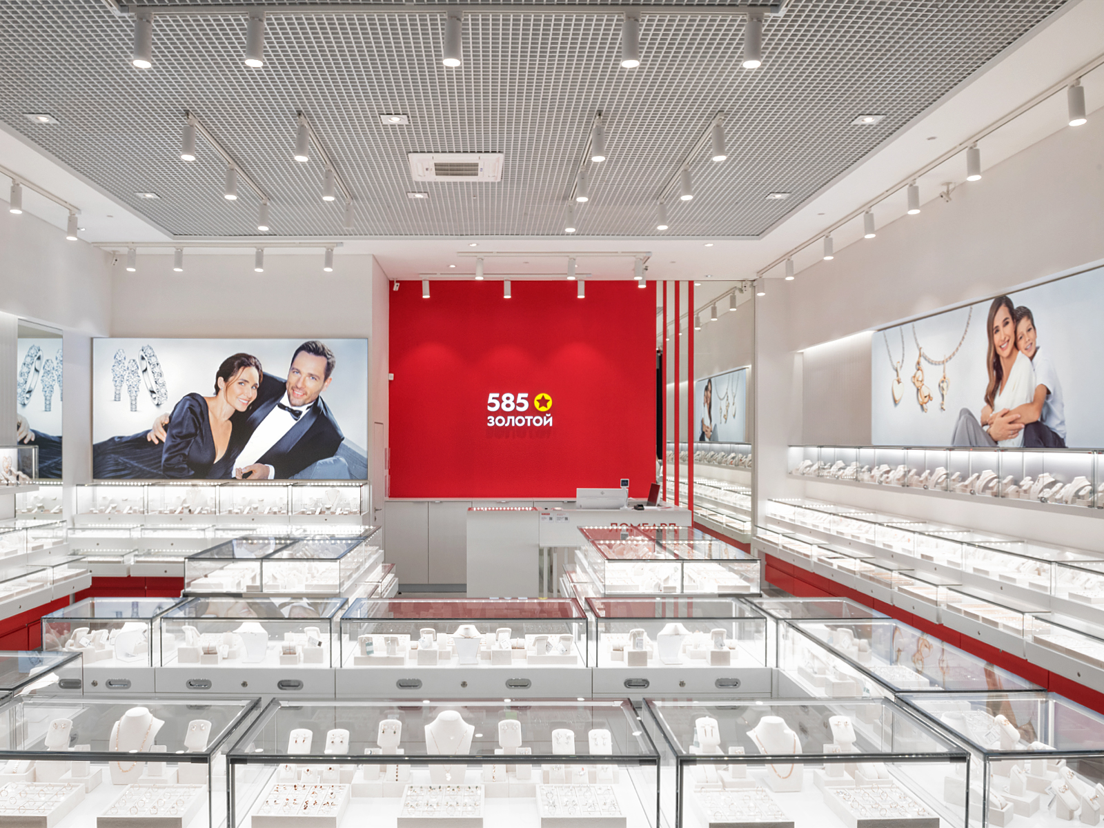 Ювелирная сеть «585*Золотой» меняет платформу бренда. В новом розничном формате сделан акцент на традиционных ценностях – так, на световых панелях, создающих атмосферу торгового зала, представлена счастливая семья: муж, жена и двое детей.