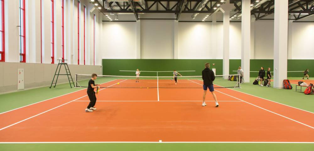 Площадь теннисного центра — 8,5 тыс. кв. м. В здании четыре наземных этажа и один подземный, на которых расположено шесть кортов для большого тенниса, зал для настольного тенниса на 8 игральных столов и два зала для сквоша. В теннисном центре предусмотрены помещения под торговые объекты, буфет, медицинский и массажный кабинеты, душевые комнаты, раздевалки. На прилегающей территории организована автостоянка на 17 машиномест.