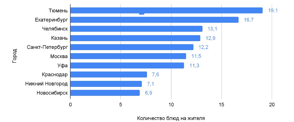 Рейтинг городов по количеству купленных в фастфуде блюд на человека