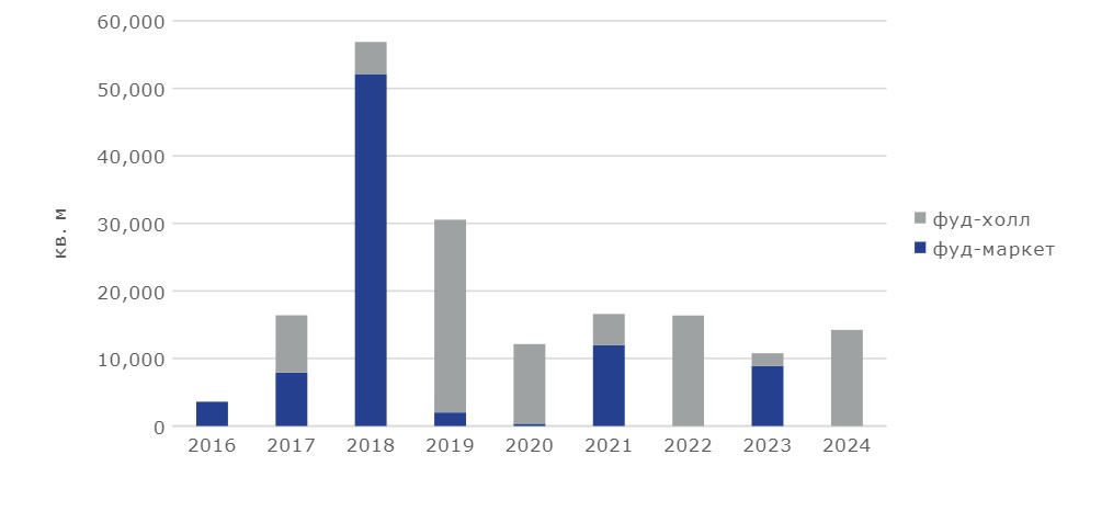 Открытие площадей ключевых гастропространств в Москве, 2016-2024П