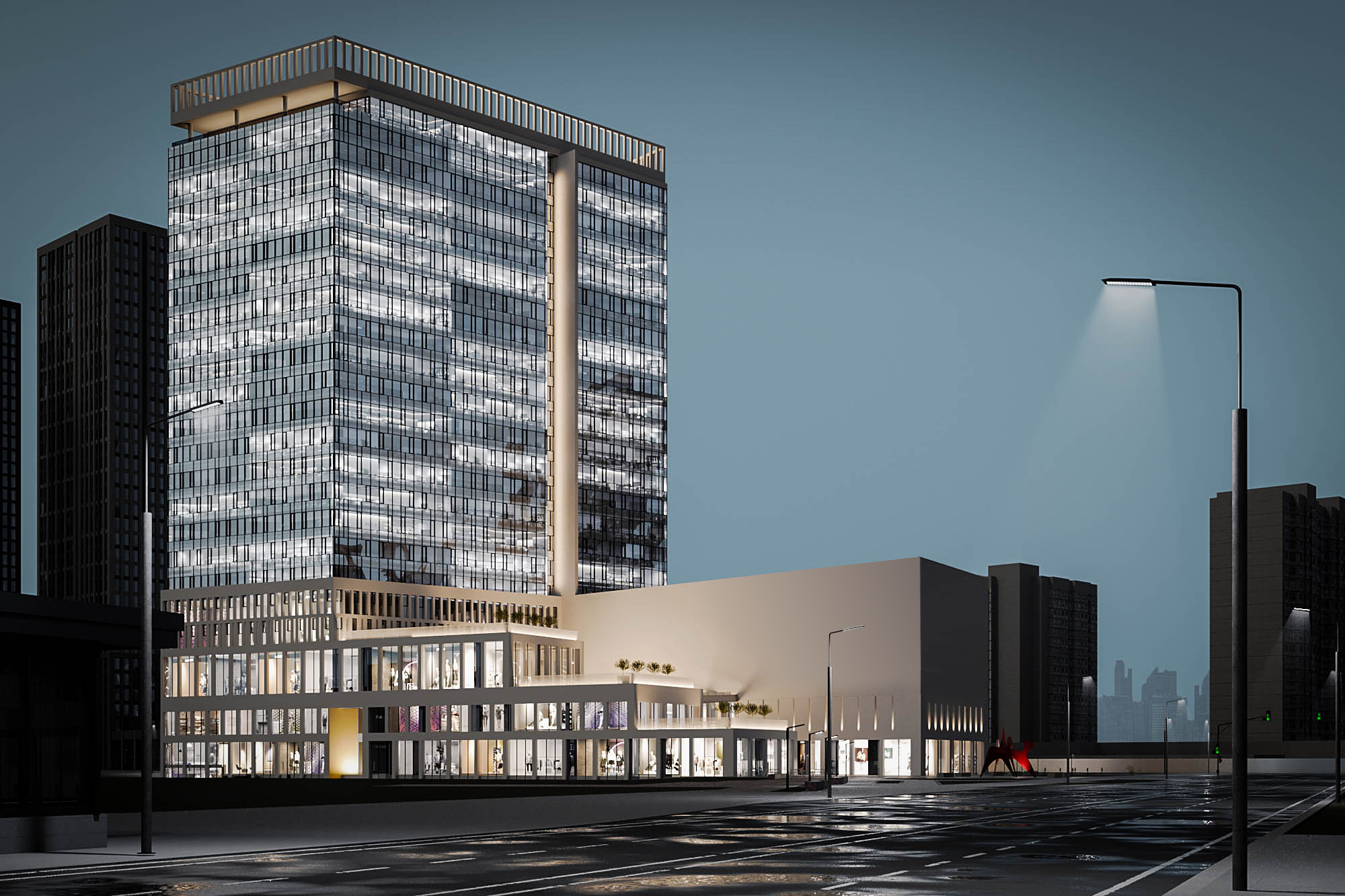 Деловое здание общей площадью 45,7 тыс. кв. м появится на юго-западе столицы. Офисный объект планируется построить на земельном участке площадью 0,5 га. Первые пять этажей общей площадью 14,5 тыс. кв. м будут отведены под инфраструктуру: там разместятся торговые и спортивные объекты, зона общественного питания, сервисное помещение и медицинский центр. Под офисы запроектировано 26,6 тыс. кв. м.