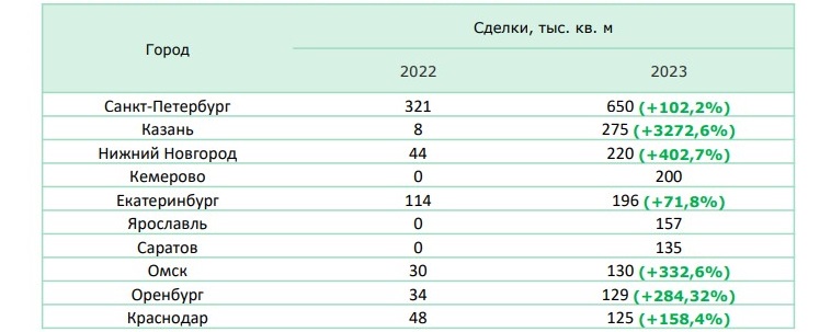 Топ-10 городов по объему сделок в складском сегменте за 2023 год