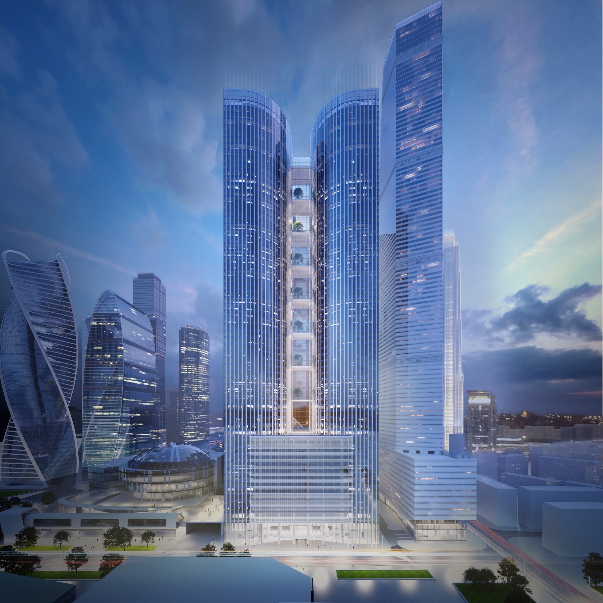 63-этажный небоскреб состоит из двух башен, соединенных между собой переходами sky-lobby и общей стилобатной частью. В рамках реализации проекта Moscow Towers построено 260 000 кв. м офисных и 24 800 кв. м коммерческих (торговых) помещений по BOMA, 224 апартамента с панорамными видами города, подземная и надземная парковки на 1 249 машиномест. Современная система вертикального транспорта состоит из 72 лифтов и 15 эскалаторов.