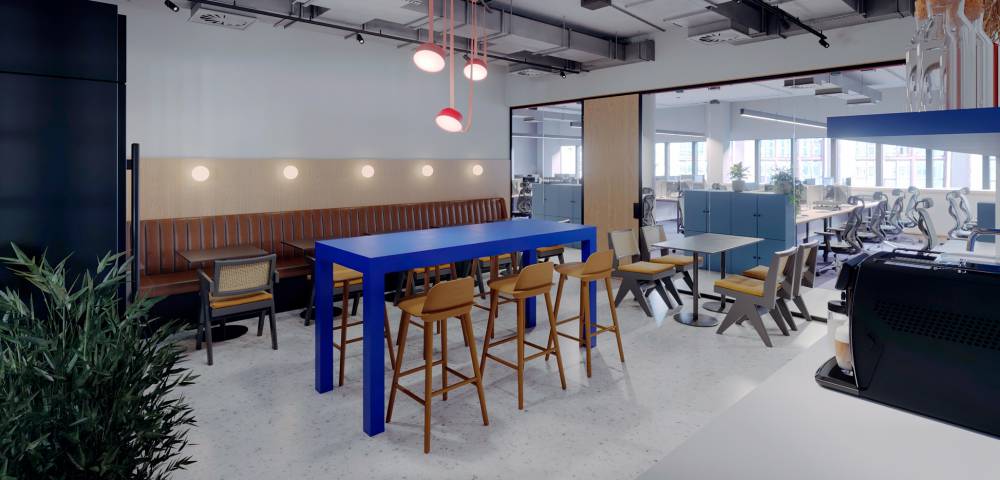 Новое представительство Московской биржи расположится на восьми этажах бизнес-центра «Газетный, 17» в сервисном офисе площадью 5 388 кв. м. Функциональное пространство, включающее зоны open space, кабинеты и переговорные различной конфигурации, акустические кабины, кофе-поинты, а также вместительный конференц-зал, позволит комфортно разметить сотрудников. В здании будут оборудованы 620 рабочих мест, часть которых можно будет использовать в гибридном формате, и они станут доступны для более чем 3 000 сотрудников. Проект реализуется по стандартам Business Club и адаптируется под индивидуальные требования заказчика.