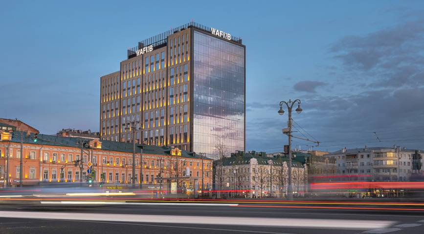 Расположенный в двух минутах от станций метро «Белорусская», Белорусского вокзала, линии МЦД и аэроэкспресса в аэропорт Шереметьево, 16-этажный бизнес-центр AFI2B создан по международным стандартам: здание соответствует требованиям сразу двух экосертификатов BREEAM Excellent и WELL GOLD.