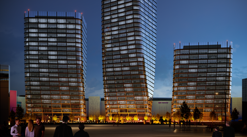 В башнях разместятся офисные помещения, центр современного искусства, точки стрит-ритейла на первом этаже, а на подземных уровнях – паркинг. Архитектурный проект бизнес-центра разработало бюро ADM architects.