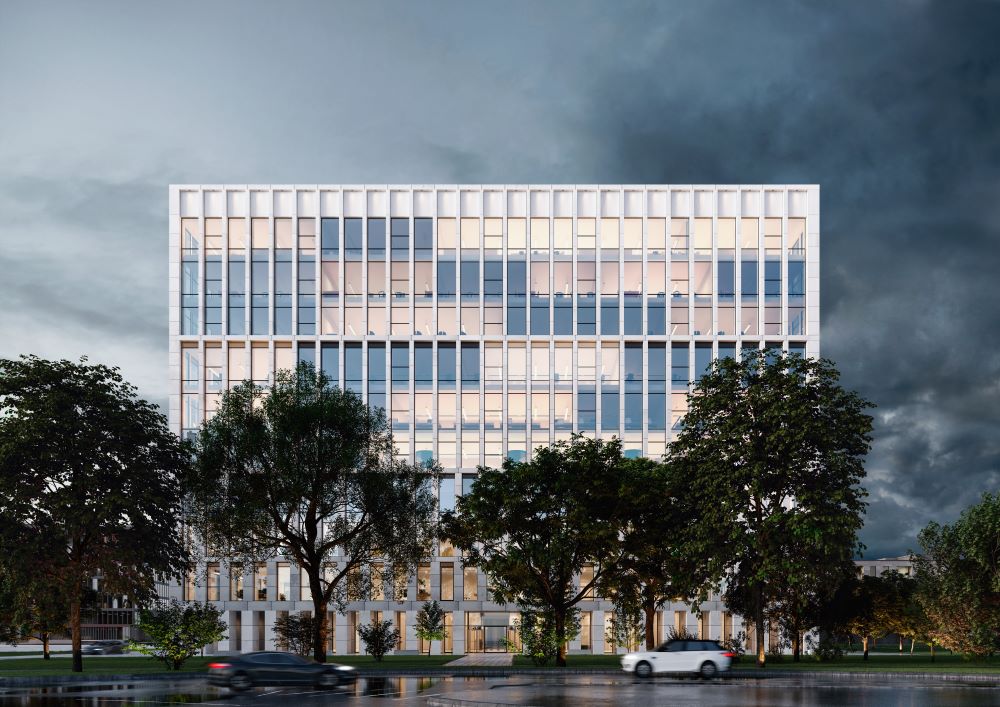 Фасады премиального офисного здания выполнены из натурального камня светлого оттенка. Остекление в пол, площадь которого увеличивается к верхним этажам, обеспечит максимальный доступ солнечного света во все пространства. На первом этаже, помимо представительского лобби и бизнес-гостиной, возможно размещение лобби-кафе с отдельным входом с улицы и летней верандой, переговорных зон, клиентских офисов или выставочного пространства.