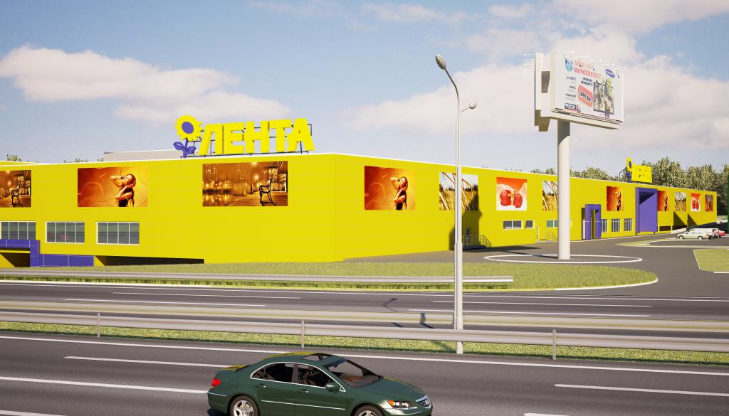 Вход в торговую галерею находится в фасадной части здания. Практически все выставленные на продажу торговые помещения сданы в аренду. Якорный арендатор этой части комплекса – супермаркет «Гипер Лента».