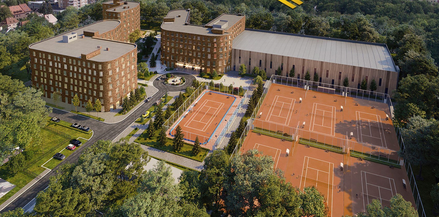 Два корпуса делового блока общей площадью более 27 тыс. кв. м объединят под своей крышей офисы, конференц-зал на 250 мест и зоны спортивного ретейла. Гостиница на 84 номера будет ориентирована на спортсменов, болельщиков, деловые делегации и туристов, посещающих Калининградский край. Проектом также предусмотрен ресторан с летней верандой и подземный паркинг на 208 машиномест. Общая площадь составит 56 300 кв. м, а объем инвестиций — 4 млрд руб.