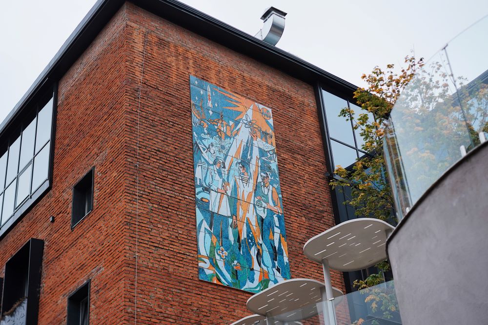 В деловом квартале «Товарищество Рябовской Мануфактуры» завершились реставрация и установка советского стеклянного панно «Достижения СССР».