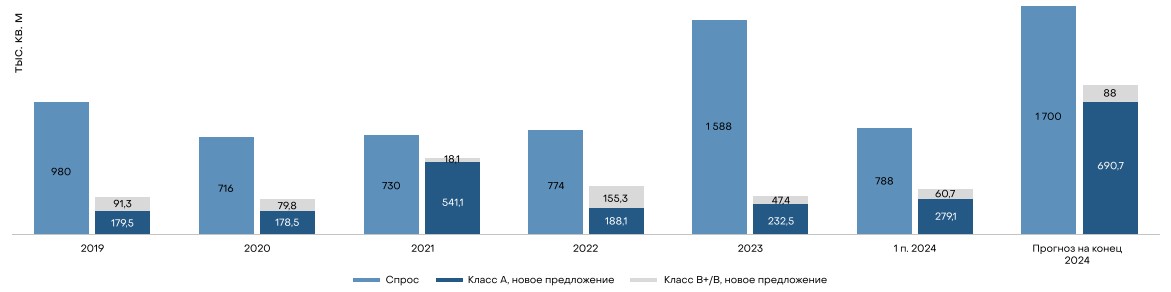 Во-первых, российский бизнес (производственные, финансовые, IT-компании и др.) в текущих геополитических условиях активно масштабируется, а это напрямую влияет на потребность в площадях.