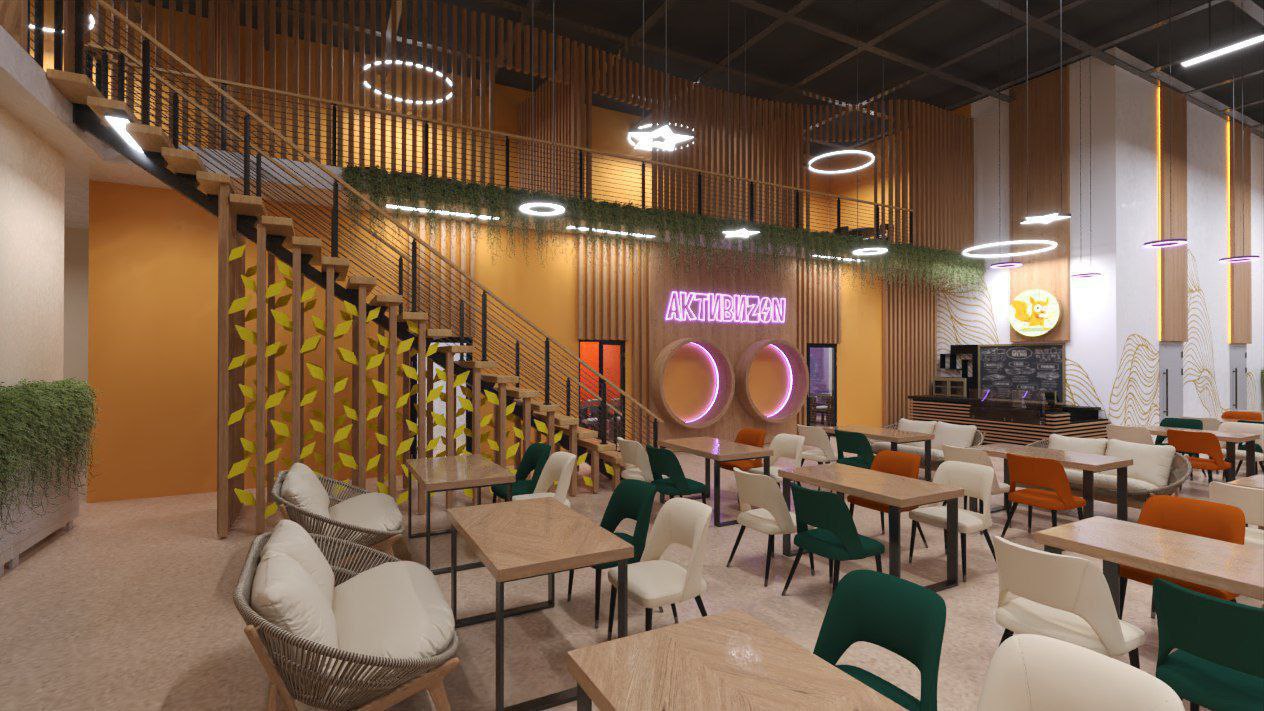 Интерьер парка будет оформлен в стилистике современного экологичного дизайна, а для комфортного отдыха всей семьей планируется кафе с европейским меню, где также можно будет проводить различные праздники и мероприятия в ярких банкетных комнатах.