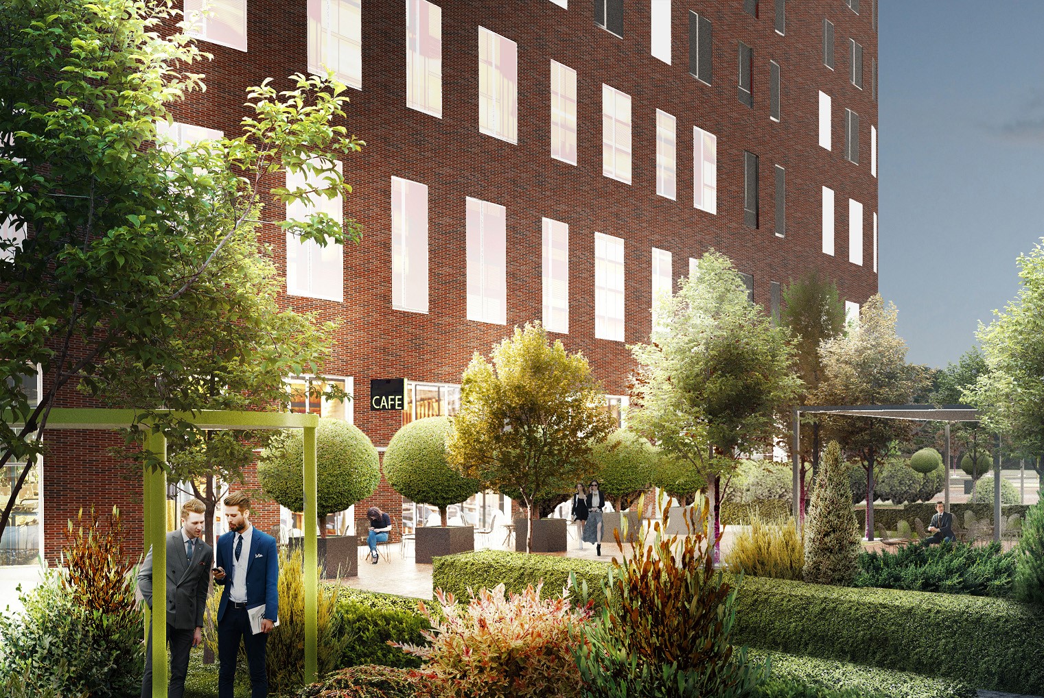 Два корпуса делового блока общей площадью более 20 тыс. кв. м объединят под своей крышей офисы, конференц-зал на 250 мест и зоны спортивного ретейла. Гостиница на 84 номера будет ориентирована на спортсменов, болельщиков, деловые делегации и туристов, посещающих Калининградский край. Проектом также предусмотрен ресторан с летней верандой и подземный паркинг на 208 машино-мест. Общая площадь комплекса составит 50,7 тыс. кв. м.
