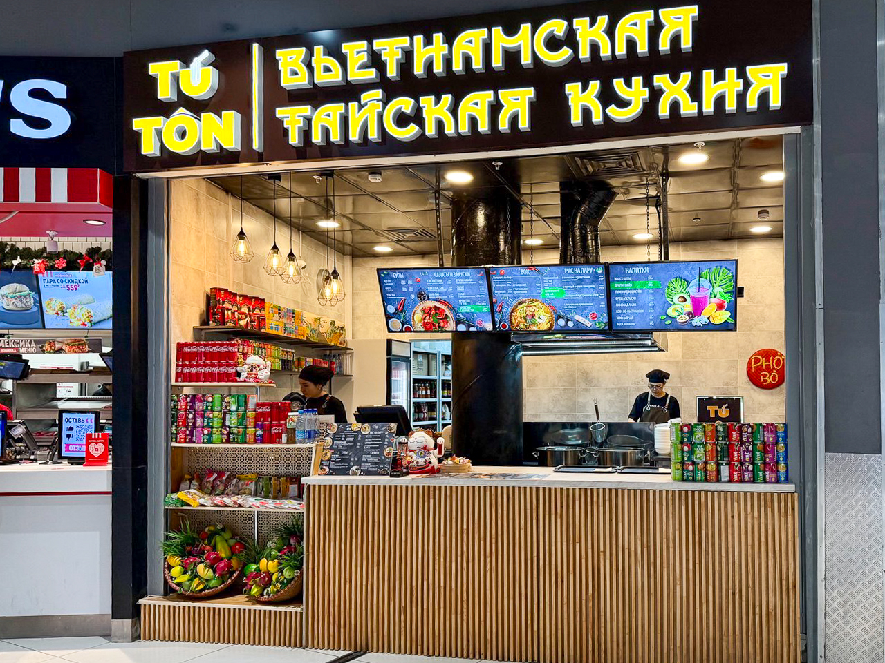Кафе Tu Ton заняло 50 кв. м. В нем подают все популярные блюда вьетнамской и тайской кухонь: супы фо бо (говяжий) и том ям (кисло-острый с курицей и морепродуктами), рулетики нэм из рисовой бумаги и фрэш-роллы, вок с говядиной и рис с креветками.