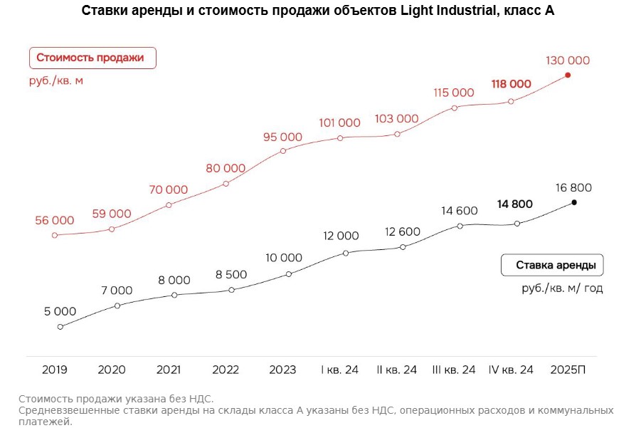 Однако желающих купить больше, чем построить и продать. Интенсивный рост стоимости проектов light industrial повышает интерес со стороны инвесторов. После ввода объекта в эксплуатацию стоимость актива в этом формате возрастает в среднем на 8% в год, уточняют в IBC Real Estate. Арендная доходность light industrial достигает 15% годовых.