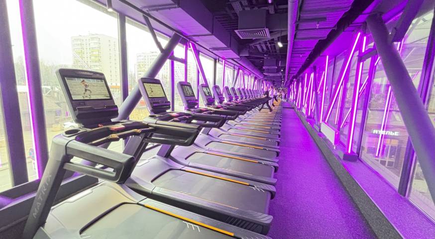 За панорамными окнами на площади почти 1359 кв. м оборудованы более 100 современных тренажеров, SPA-зона и залы для групповых программ.
