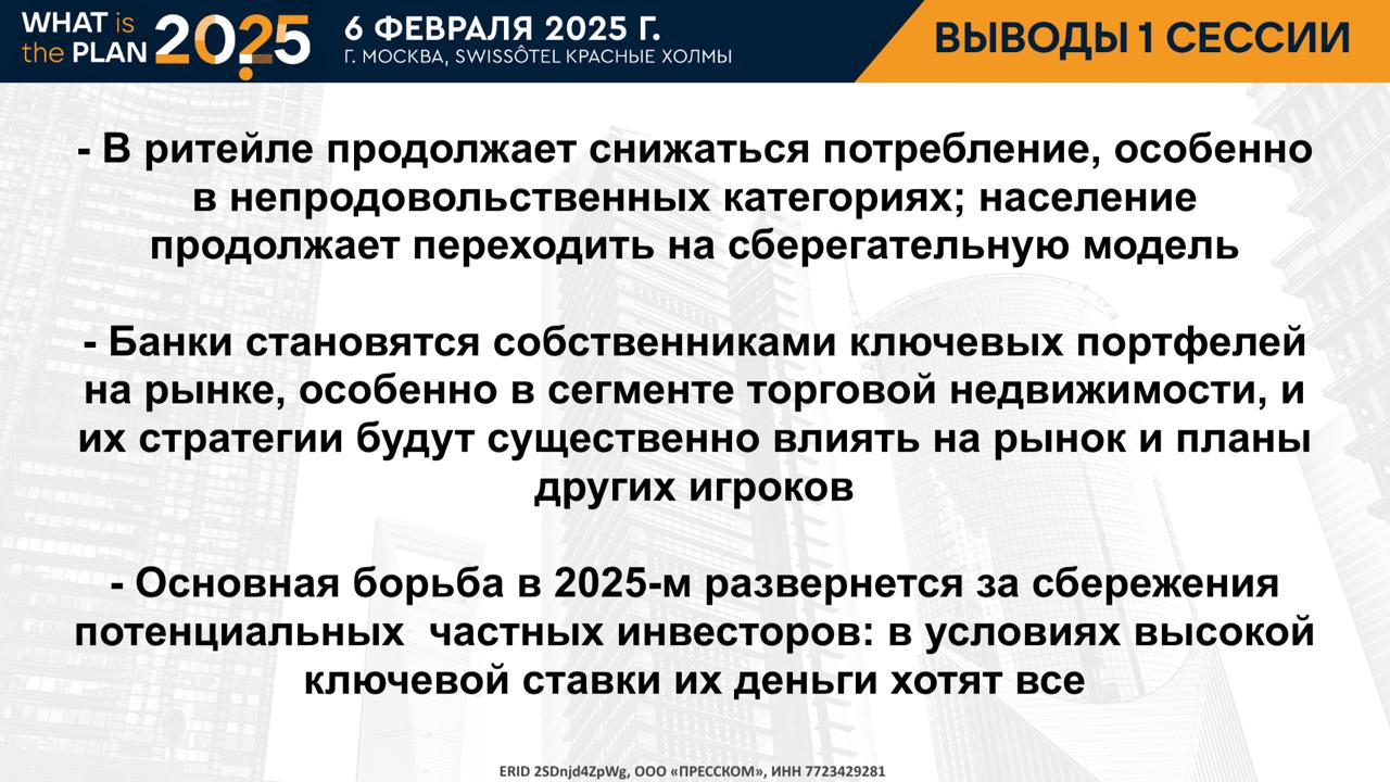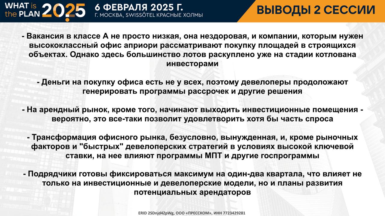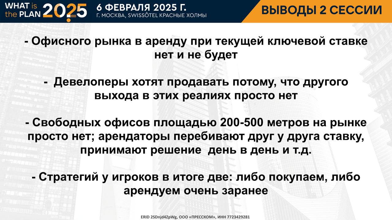 Как жить с "ключом" выше 20%? Есть ли инвесторы, кроме госкомпаний? Где искать офисы в аренду? Кто покупает офисы и зачем? Где взять денег на строительство склада? Сколько нужно платить, чтобы девелоперы хотели строить? Что нужно производству? - эти и многие другие вопросы обсудили лидеры рынка на открывающей конференции CRE Events 2025 года.