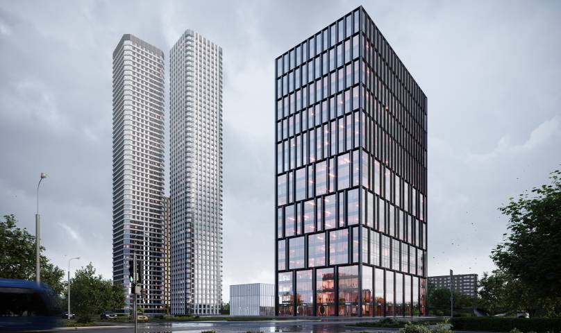 Архитектурную концепцию бизнес-центра разработало бюро IND. В состав проекта войдет офисная башня с динамичным фасадом, а также торговая галерея в панорамном остеклении. Увеличенный инфраструктурный блок общей площадью три тыс. кв. метров дополнит район кафе и ресторанами, магазинами, аптеками и банкоматами, а также сервисными службами повседневного спроса.