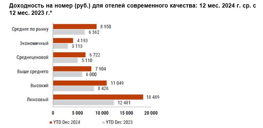 Рост основных показателей работы гостиниц Москвы по сегментам за 2024 год